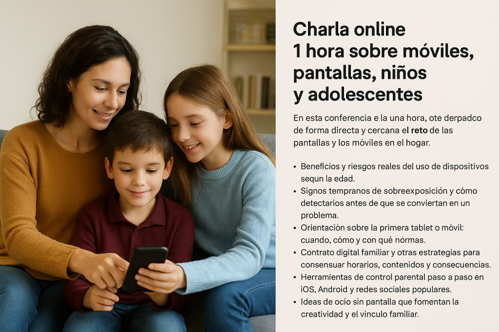 Formación online 1 hora sobre móviles, pantallas, niños y adolescentes. Especial familias y profesorado. Spread the love GRATUITA PERO PUEDES REALIZAR UNA PEQUEÑA DONACIÓN SI LO DESEAS PARA SEGUIR CREANDO CONTENIDO. Me gusta esto:Me gusta Cargando...