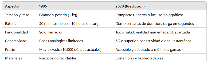 En 1985, los teléfonos móviles eran herramientas exclusivas y limitadas. En 2030, serán extensiones de nosotros mismos, diseñados no solo para comunicarnos, sino para mejorar nuestra salud, productividad y bienestar. Sin embargo, también debemos reflexionar sobre el impacto ético y social de depender tanto de la tecnología.