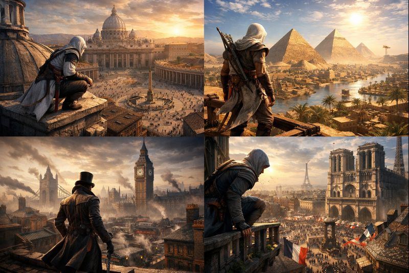 El aprendizaje geográfico y cultural es otro beneficio claro. Muchos videojuegos, como por ejemplo, Assassins Creed, (dios que juegazo) recrean ciudades reales con un nivel de detalle sorprendente. Calles, monumentos, barrios, sistemas de transporte y hasta costumbres locales forman parte del escenario. Jugadores jóvenes pueden familiarizarse con ciudades como Roma, París, Londres, Nueva York o Tokio antes incluso de visitarlas. Este conocimiento contextual facilita posteriormente el aprendizaje académico, ya que los lugares dejan de ser conceptos abstractos y pasan a tener significado.