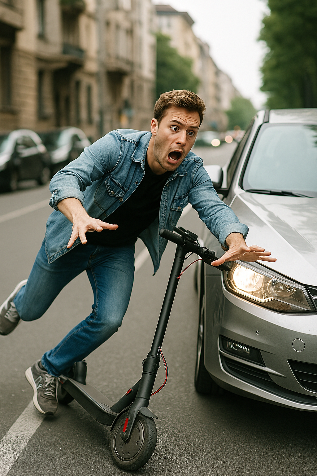 Carlos, un joven estudiante, decidió usar su patinete eléctrico para ir a la universidad. La velocidad y la facilidad de movimiento le parecían ideales. Pero un día, mientras circulaba por una calle concurrida, un peatón cruzó inesperadamente. Carlos intentó frenar, pero la falta de un sistema de frenado adecuado y la velocidad de su vehículo hicieron imposible evitar el impacto. Afortunadamente, el peatón solo sufrió heridas leves, pero Carlos aprendió una lección importante: la seguridad es primordial.v